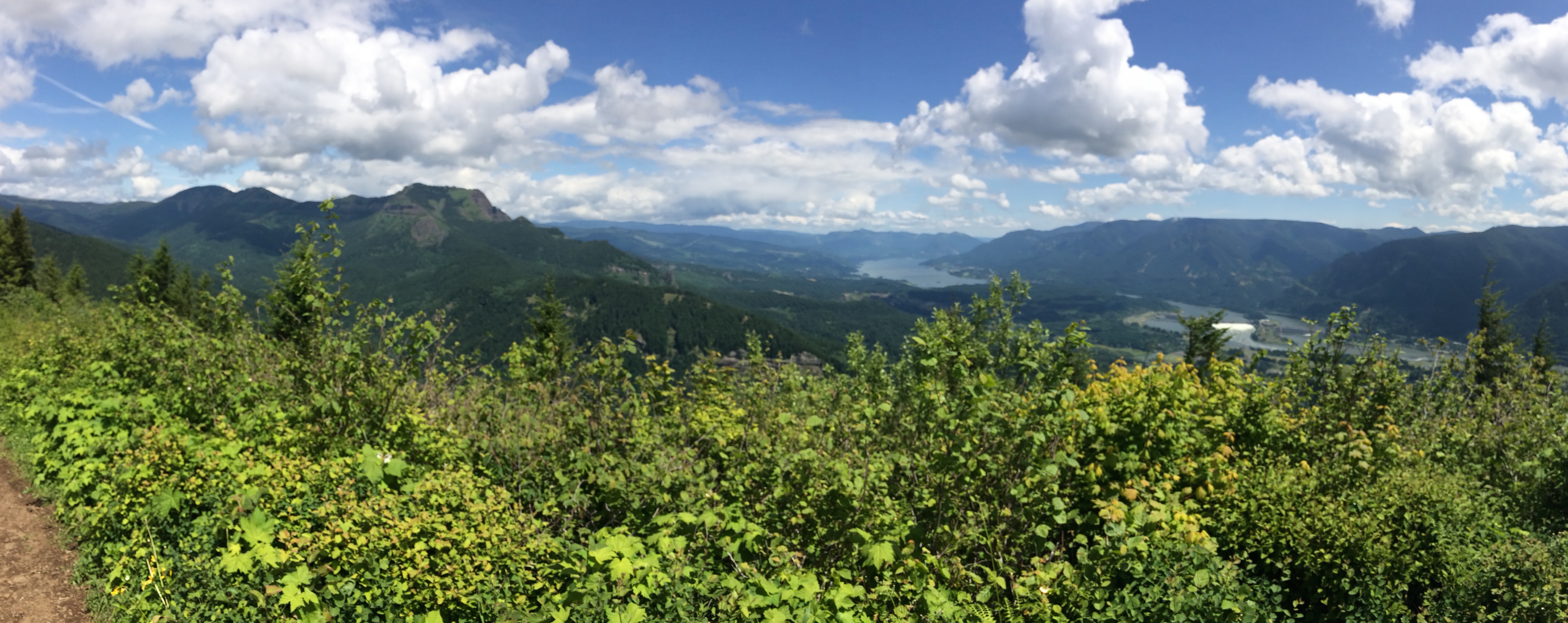 View from the top Panoramic view from the top of Hamilton Mountain with a clear shot of Table Mountain and Bonneville Dam.