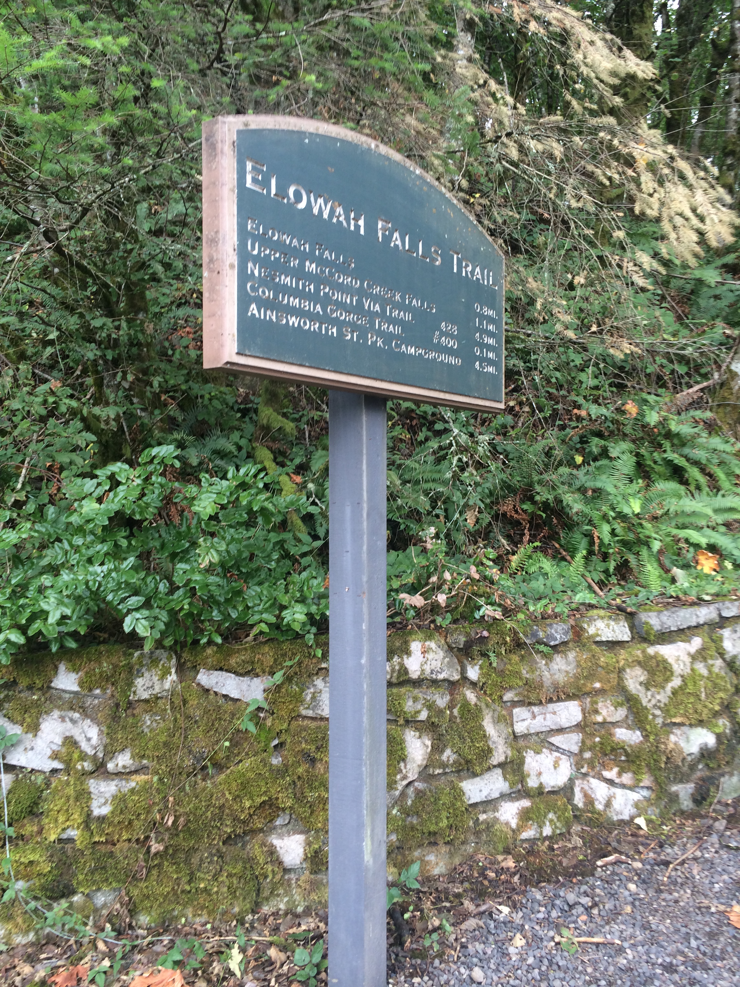From the first Elowah Falls Trailhead, it’s just shy of a mile to the falls. A short distance from the trailhead, is a sign guiding you to Nesmith Point Trail #428, Gorge Trail #400 or Nesmith Spur Road, but not to Elowah. Luckily, a directions-conscious person added it to the sign, so follow to the left and up a slight ascent (about 200 feet up). In about 20 minutes or so, you’ll come around the bend and down a short switchback trail before arriving in front of the falls.