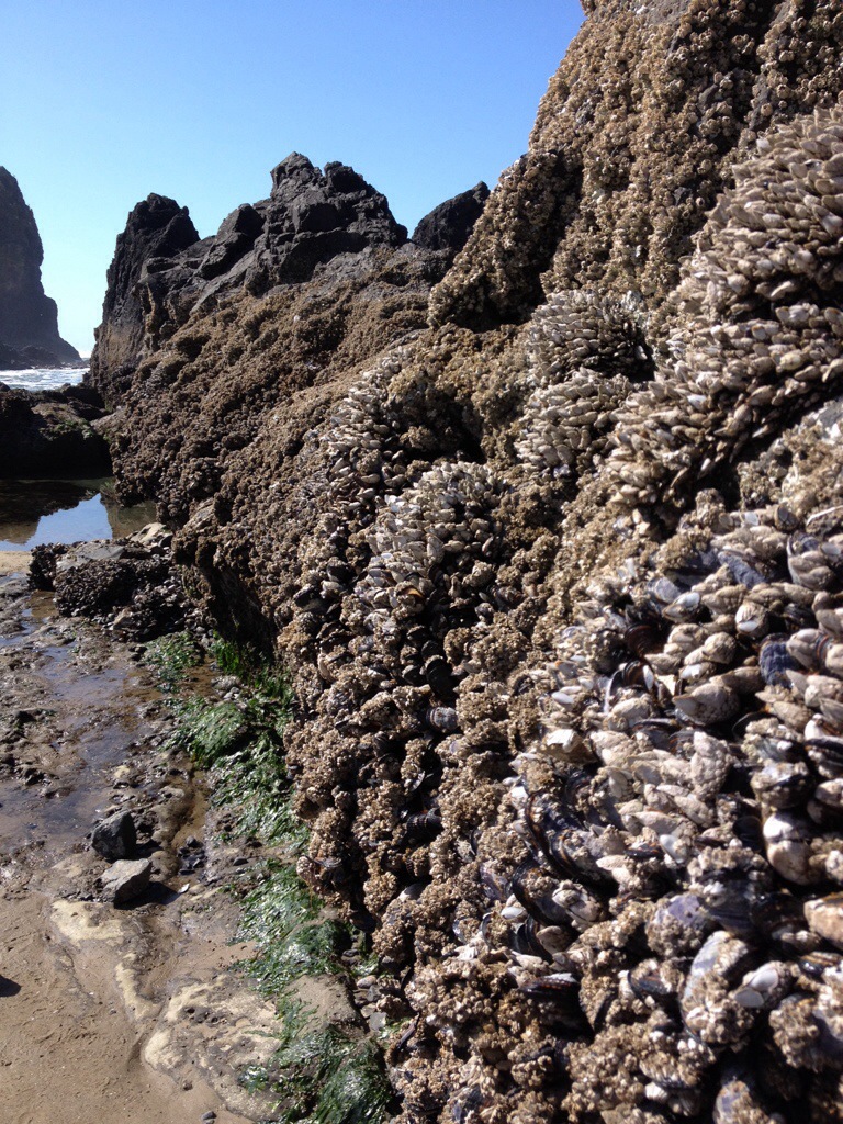 Mussels and barnacles are rampant along the rocks.