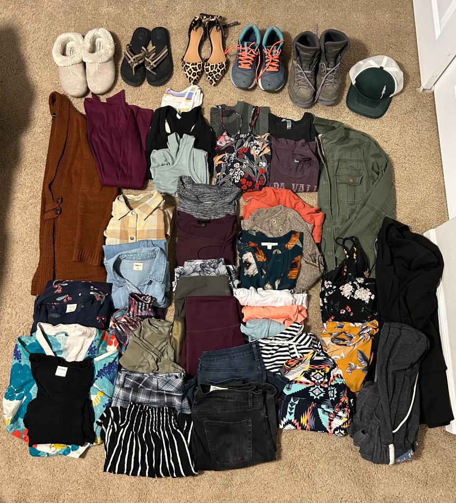- Workout clothes – I anticipated that I would exercise a lot while on my trip, but I was pleasantly surprised to see just how frequently I did between hikes, climbing, the gym, and at-home workouts. I could have afforded one more pair of leggings, but ultimately I could make my combo of leggings and workout shirts work.
