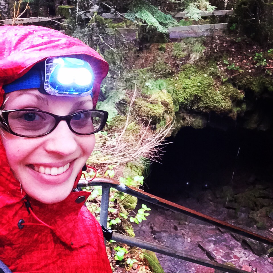 About to descend into the Ape Caves lava tubes (Mt. St. Helens, WA)